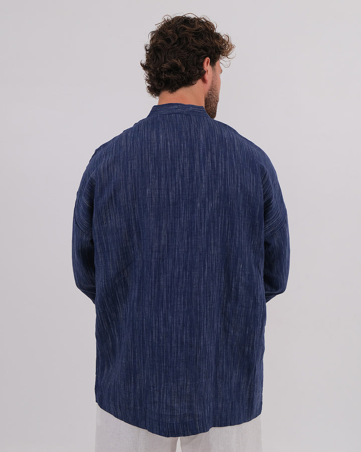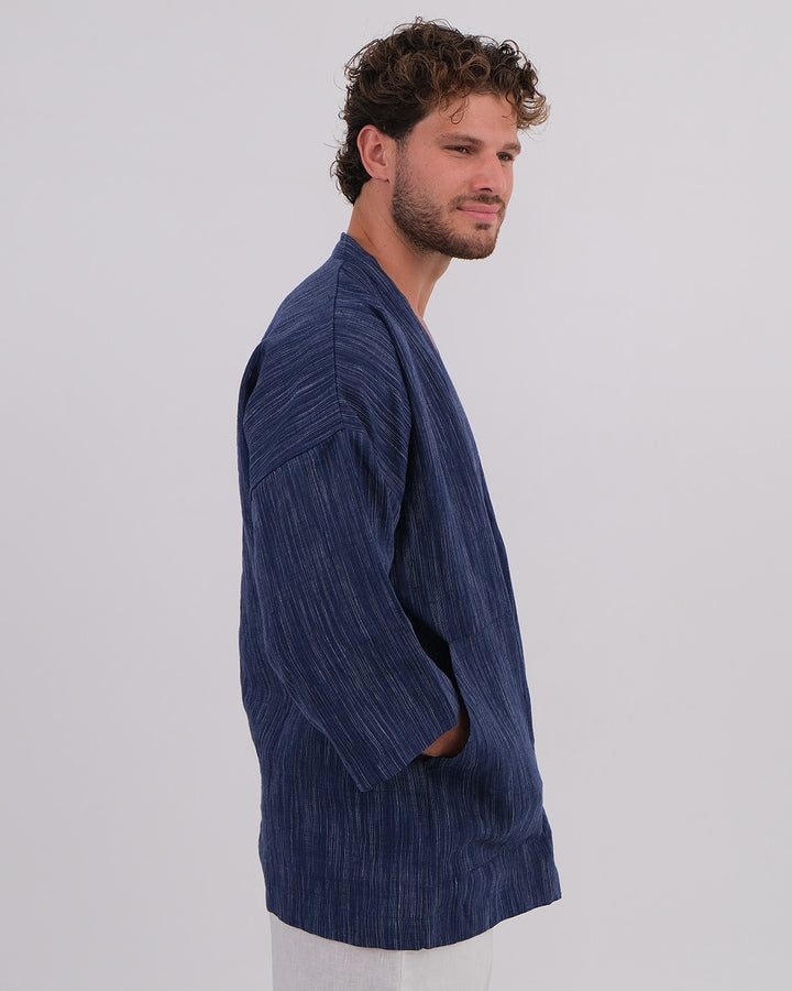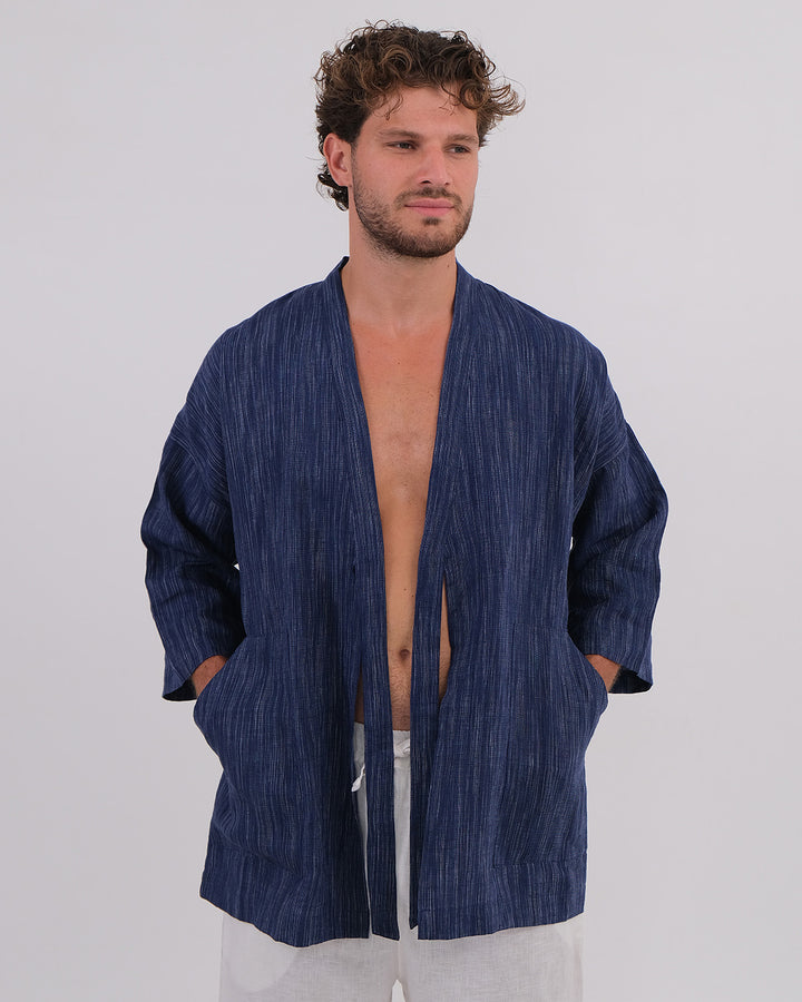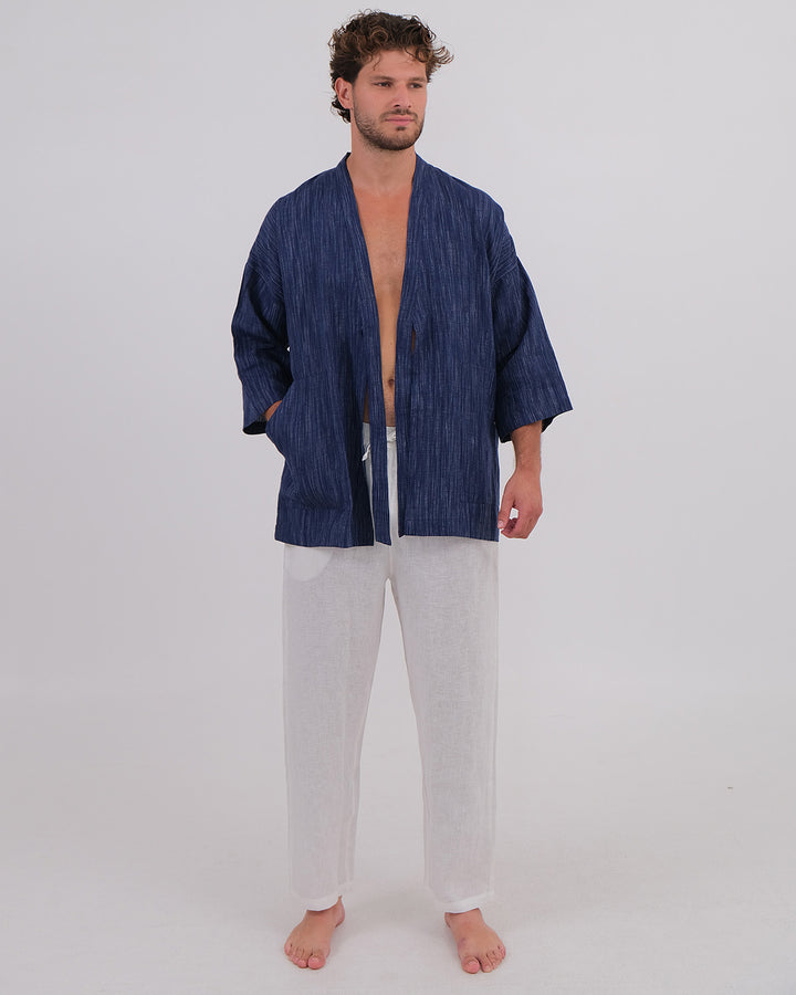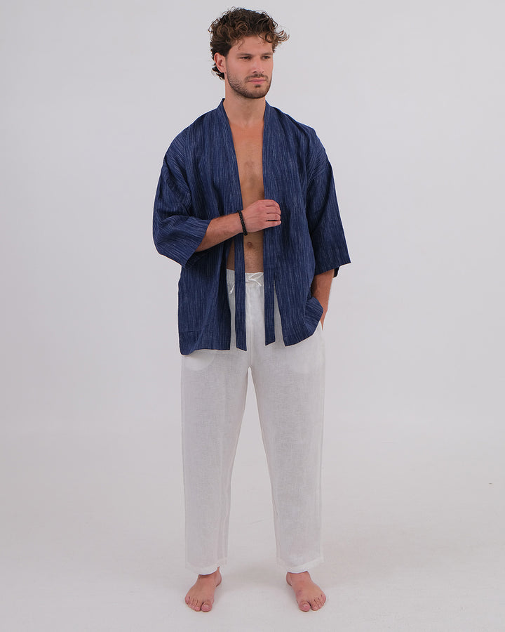 Kimono Linen 100% Navy Chambray & Long Pant Linen 100% White