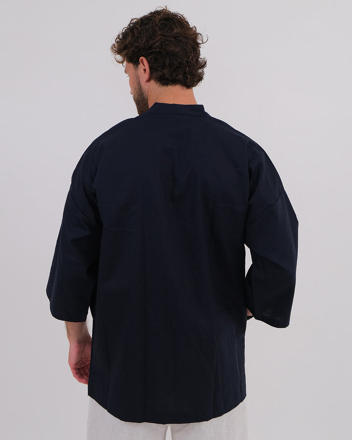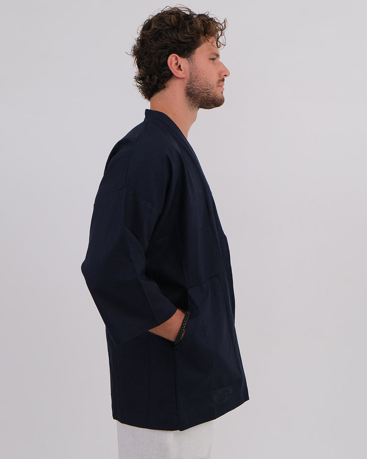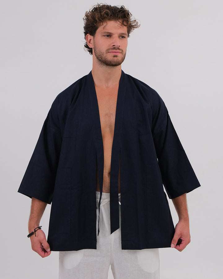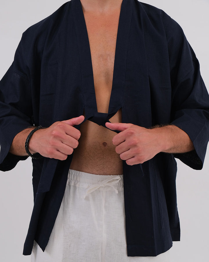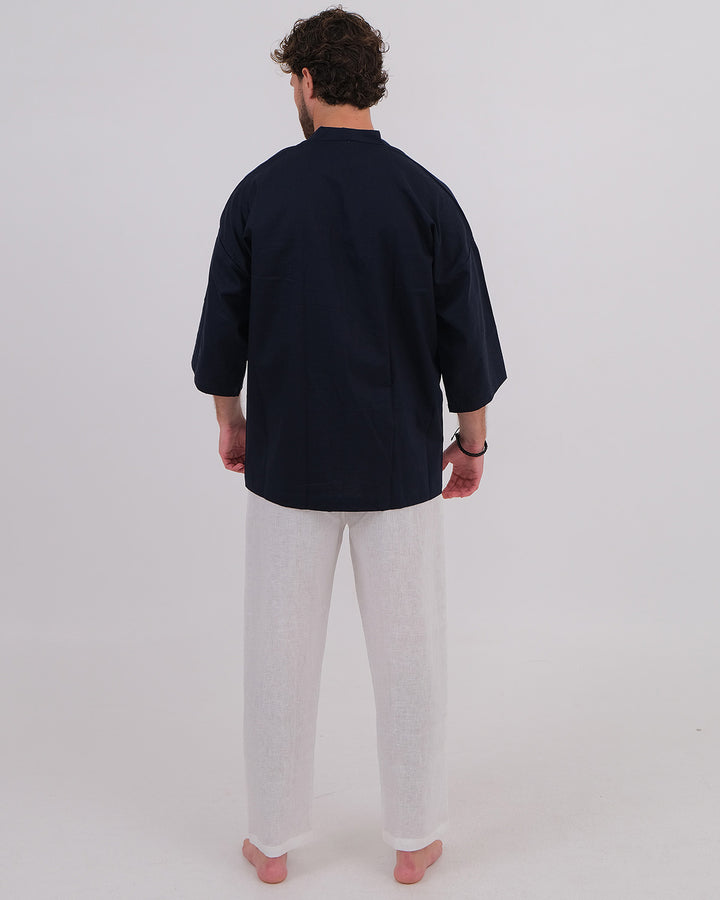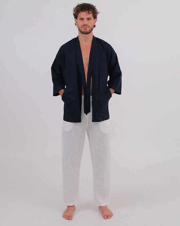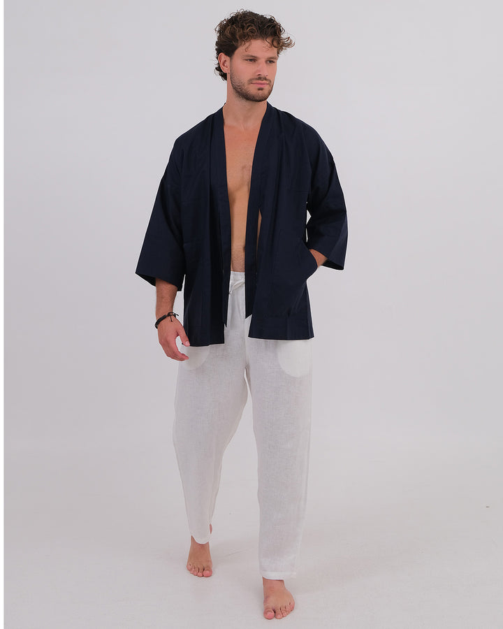 Kimono Linen 100% Navy & Long Pant Linen 100% White