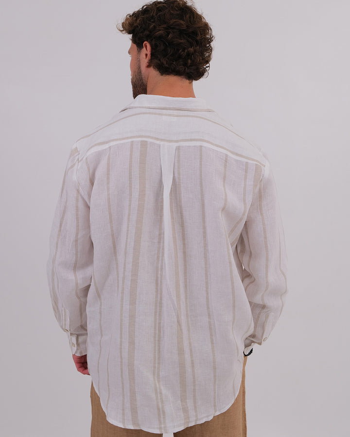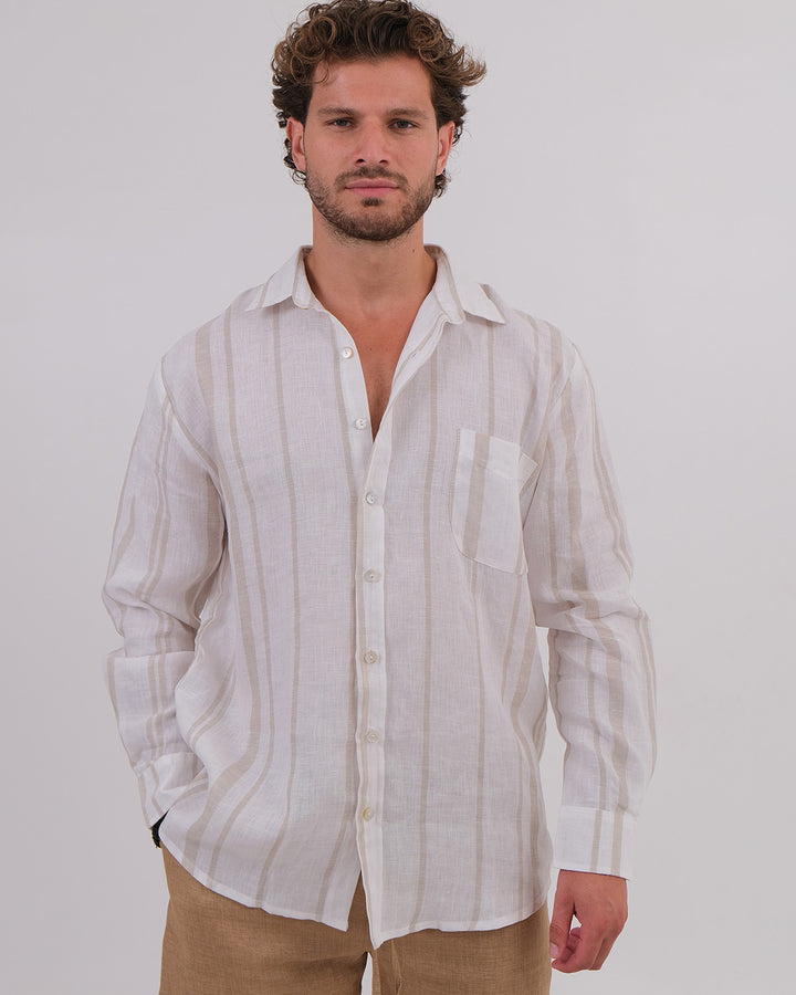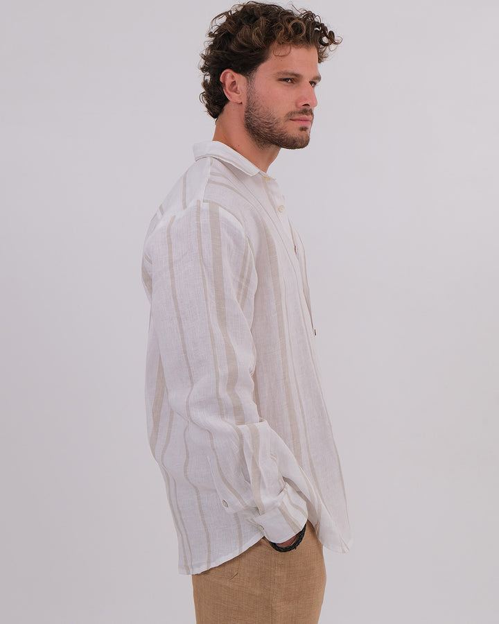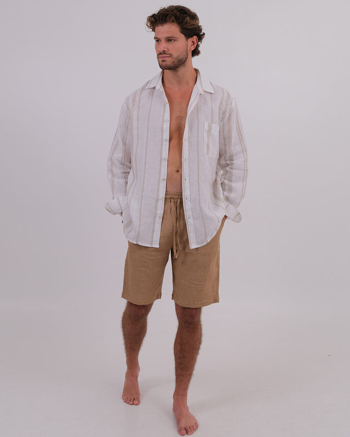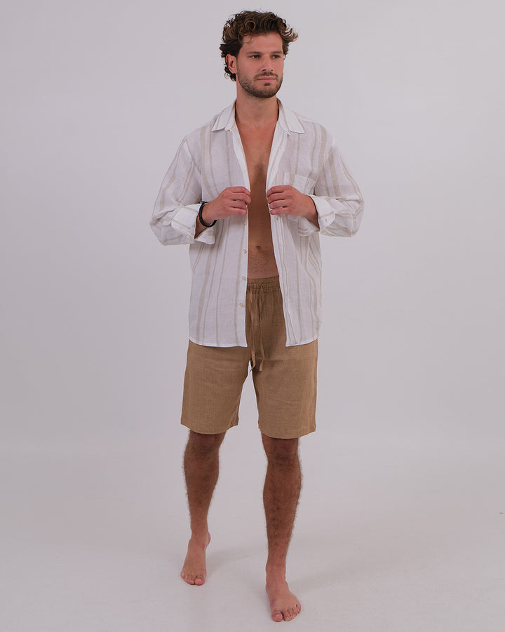 Men Shirt Collar Linen 100% Stripes Beige & Unisex Short Linen 100% Brown