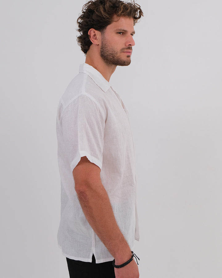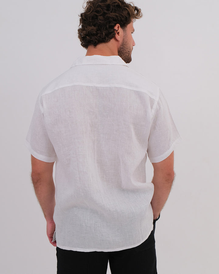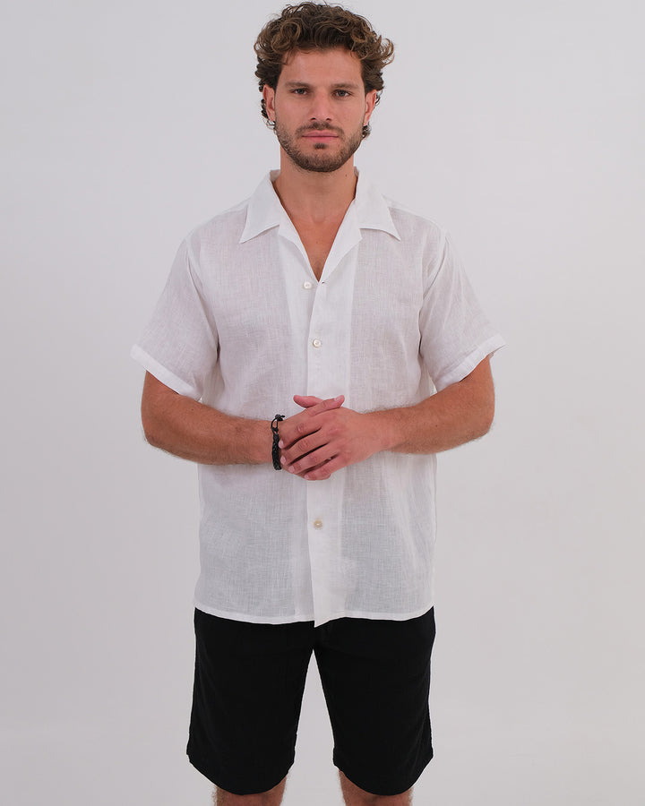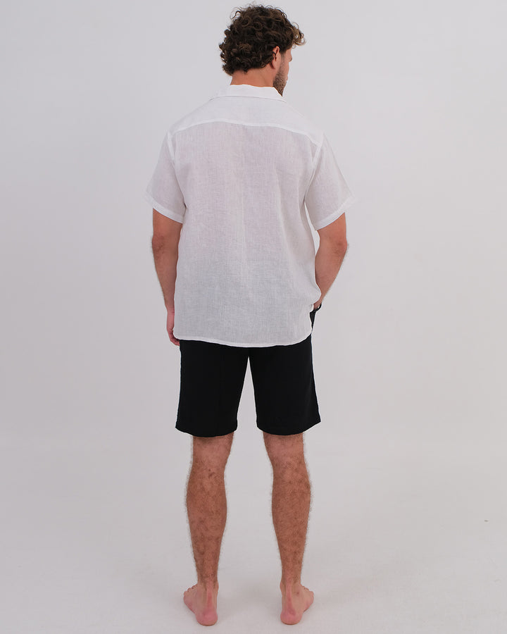 Men Shirt Short Sleeve Linen 100% White & Unisex Short Cotton Bubble Black
