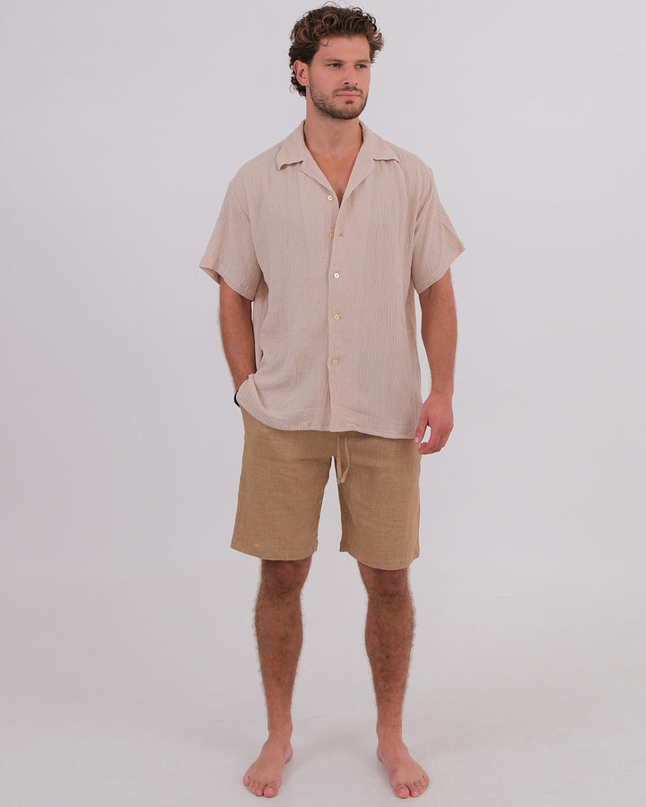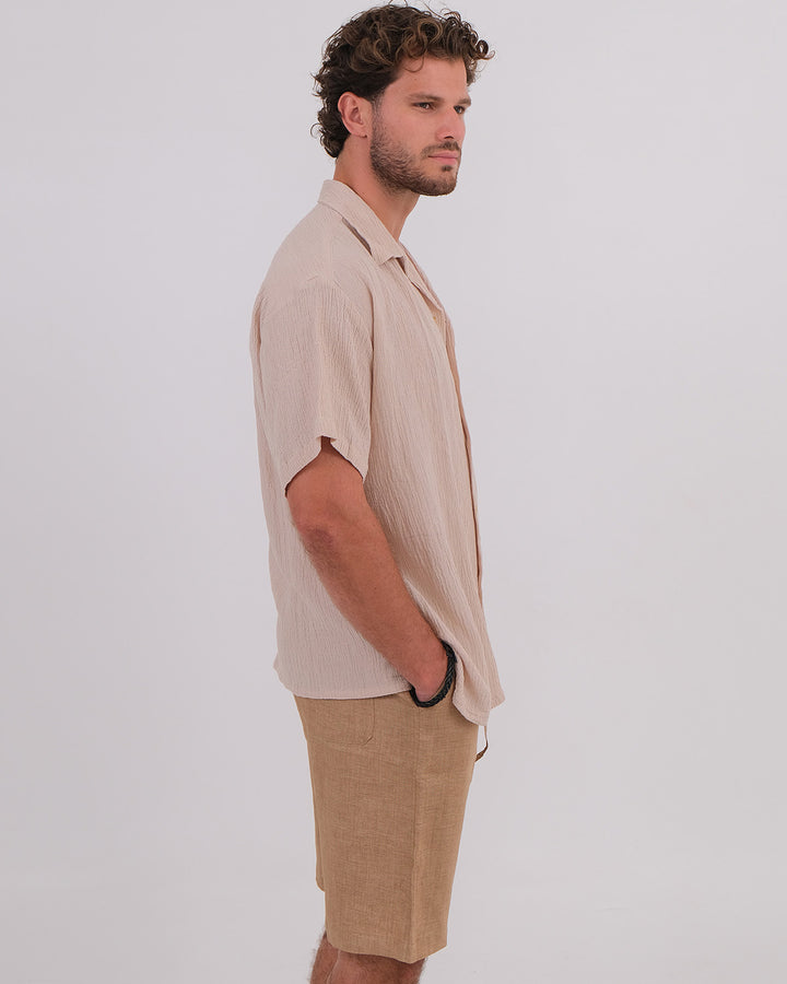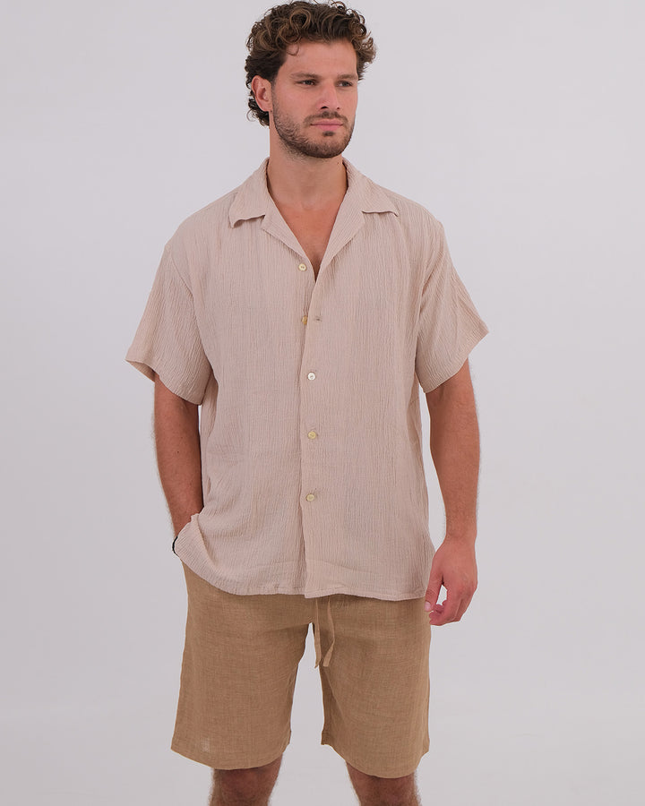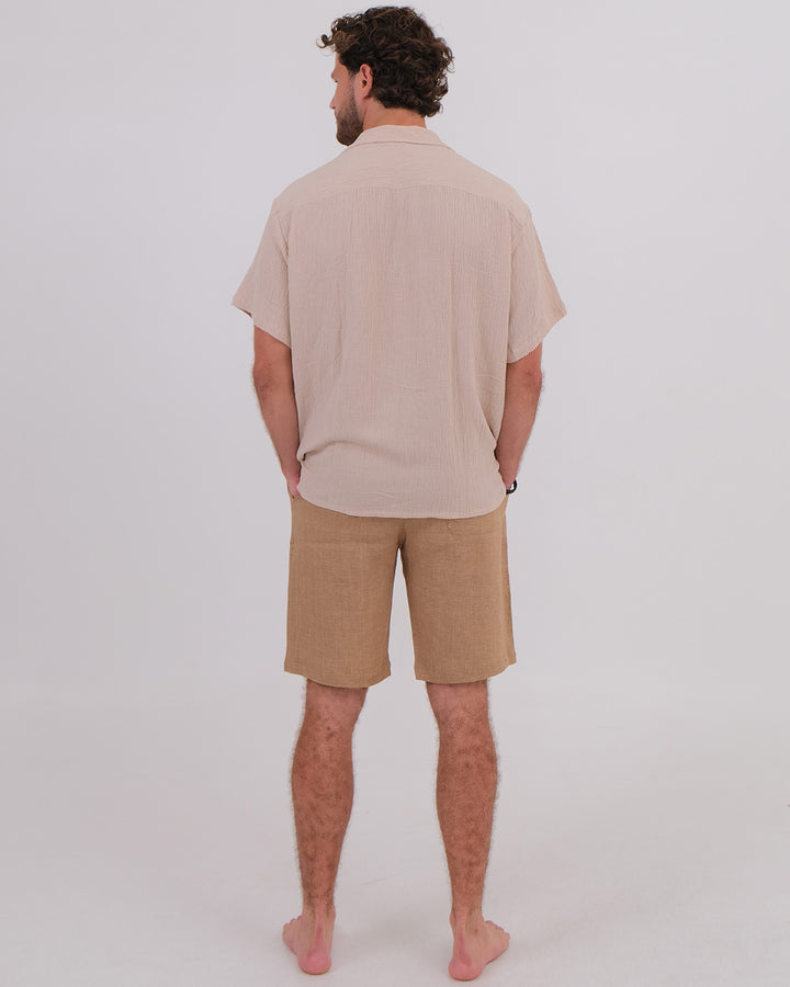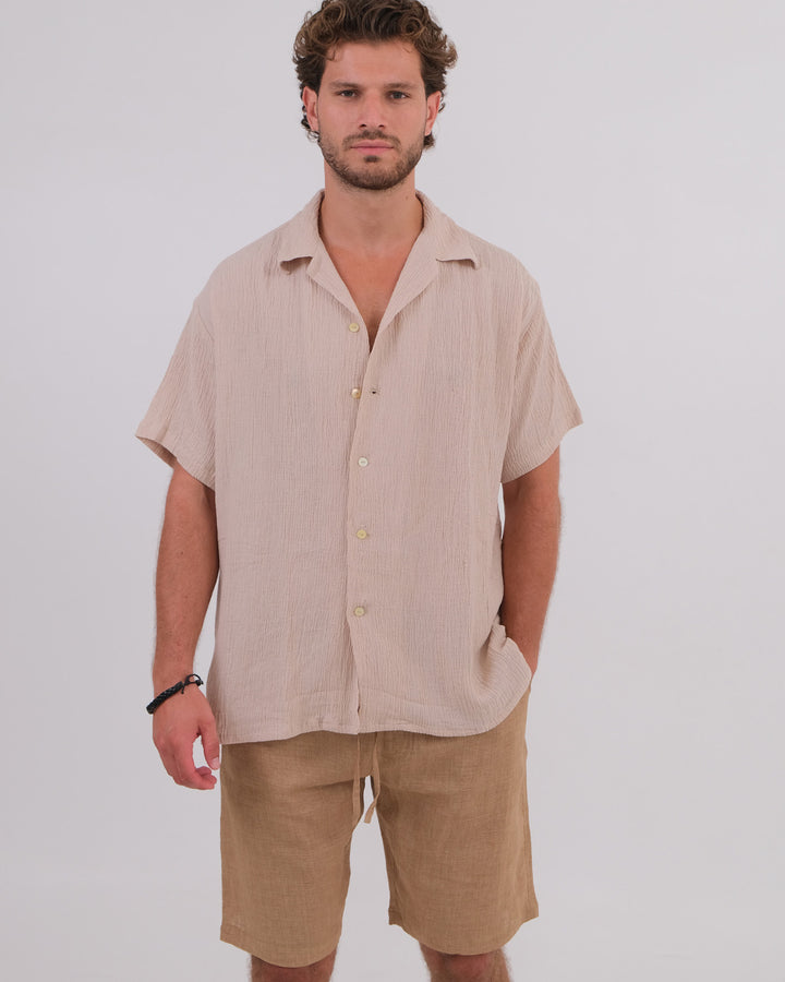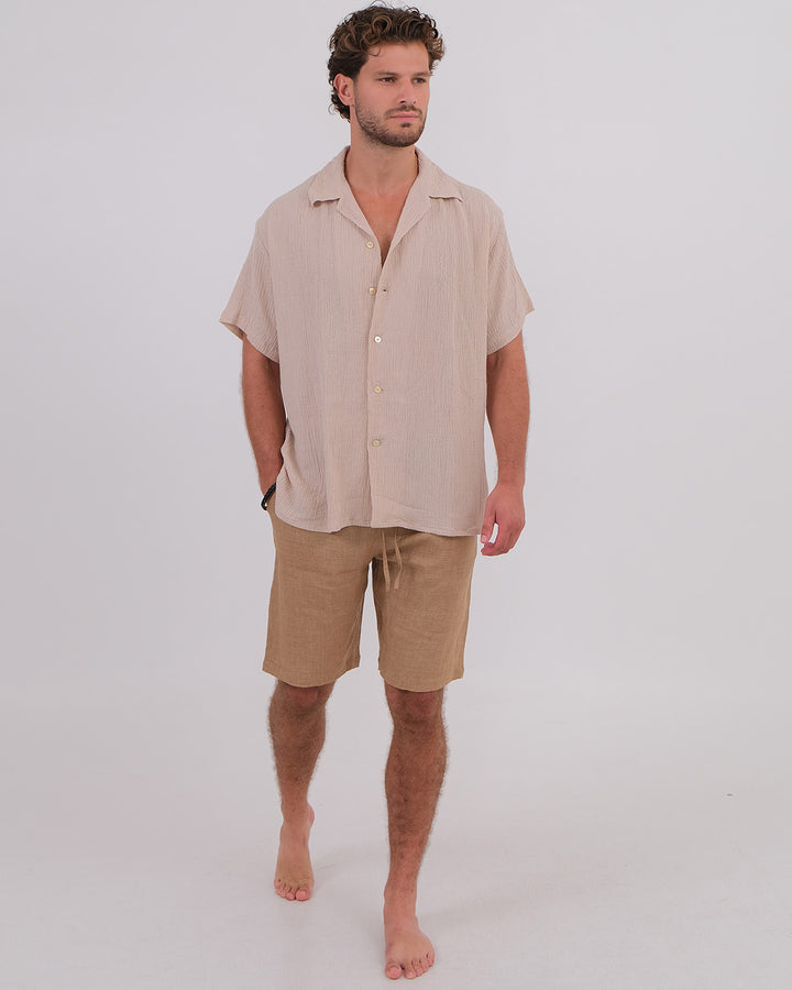 Men Shirt Short Sleeve Linen Rayon Crincle Natural & Unisex Short Linen 100% Brown