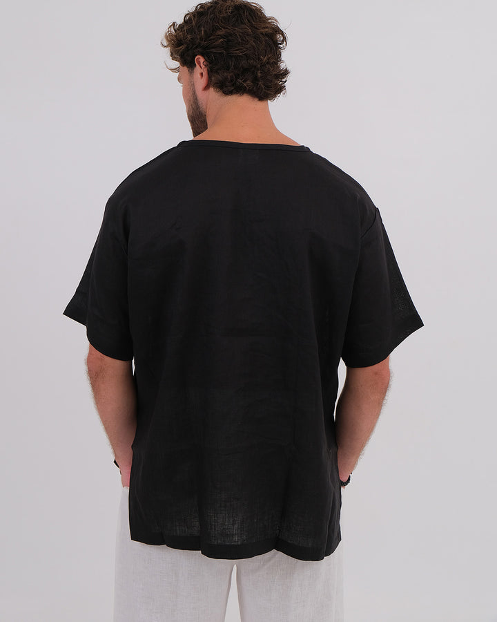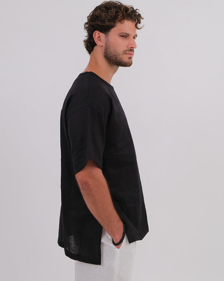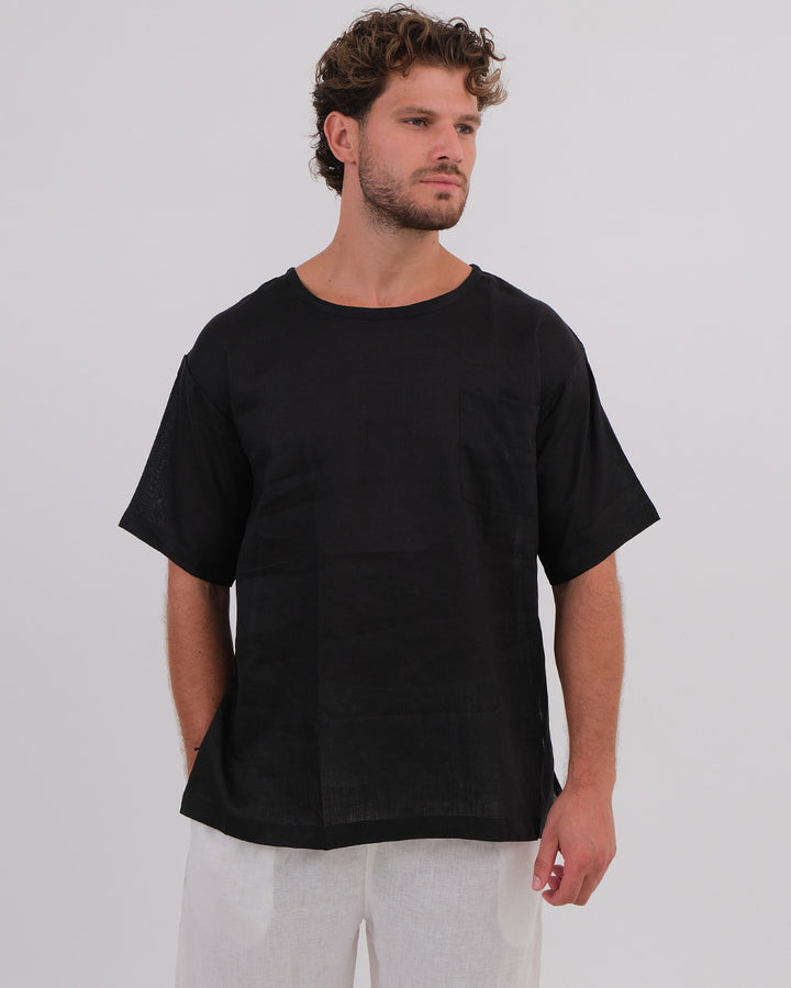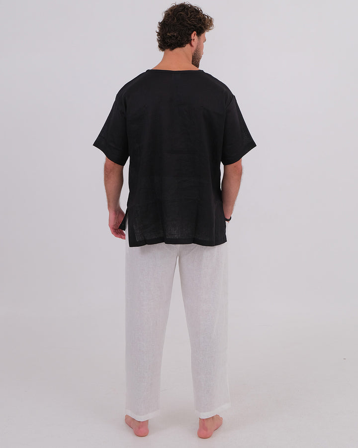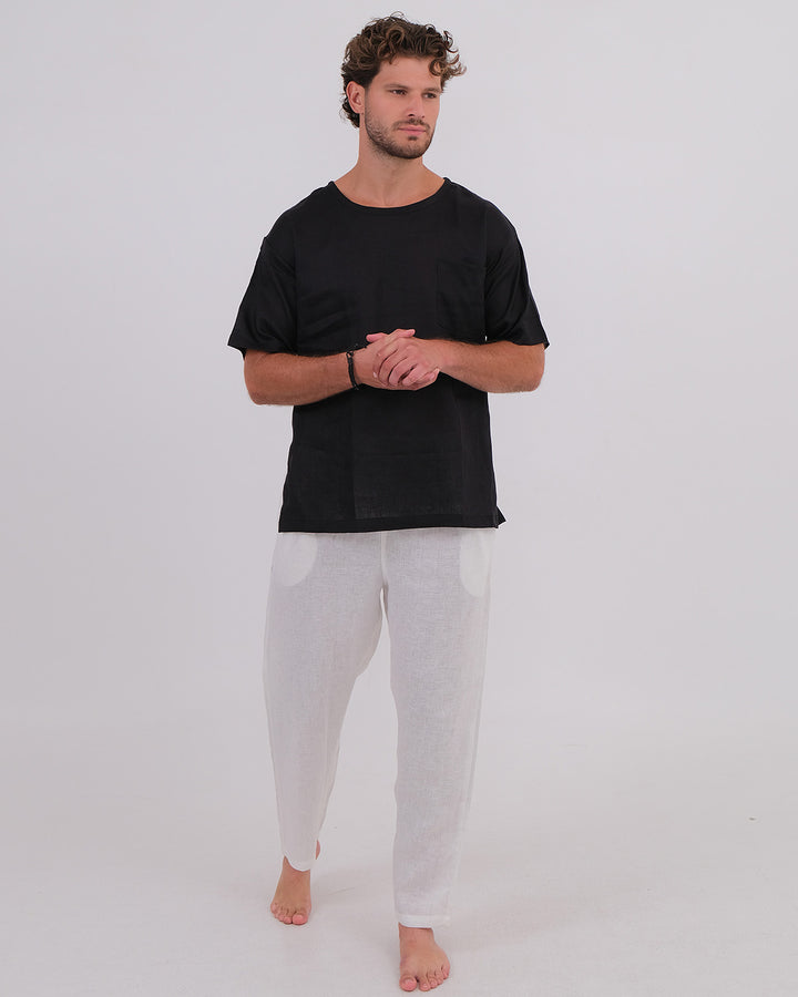 T-Shirt Linen 100% Black & Long Pant Linen 100% White